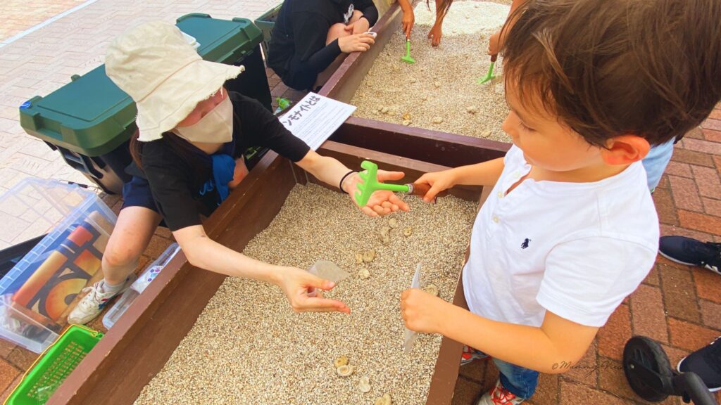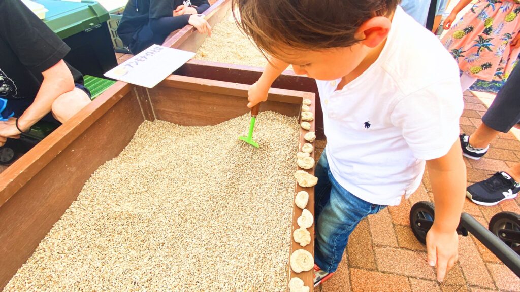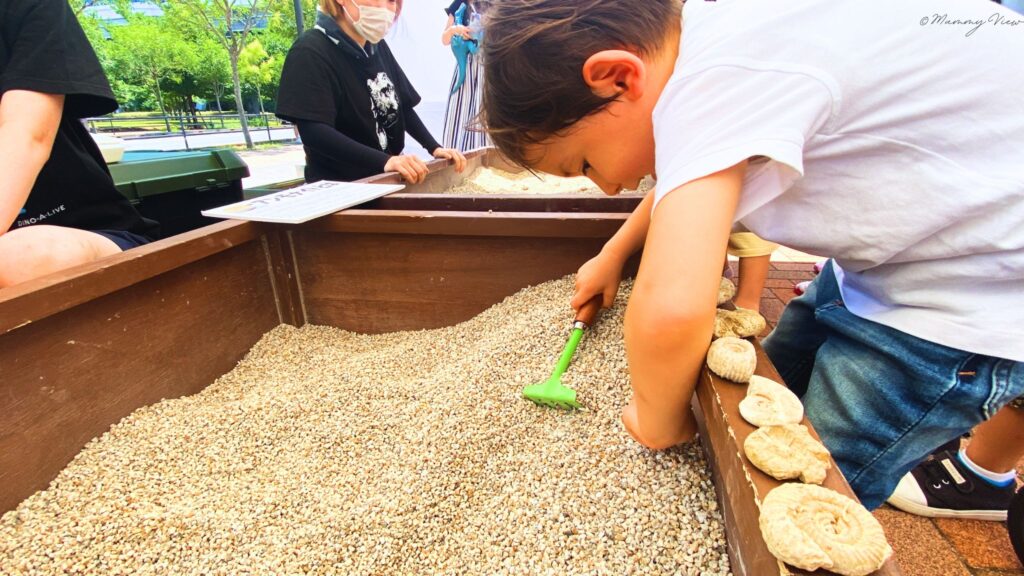 我が家はアンモナイト探しに挑戦!内心は、イギリス南西部チャーマウスの海岸ではアンモナイトがゴロゴロ、落ちてタダで取れるんだけどな。と思いましたがここはバーステーボーイのため一緒に楽しみました。(1回 3分 1,000円)