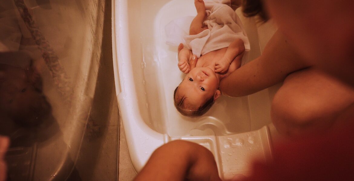 生まれてから最初の入浴は、5日から1週間ほど経ってからにしましょう。産院で、沐浴指導もありますが、その際、石けんを使わないよう、お願いすることをおすすめします。