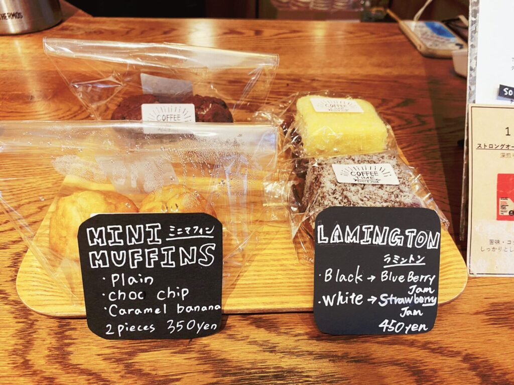 オーガニックコーヒーだけでなく、手作りの焼き菓子などのフードメニューも提供しています。今回オーストラリアの伝統的なお菓子「ラミントン」をいただきました。